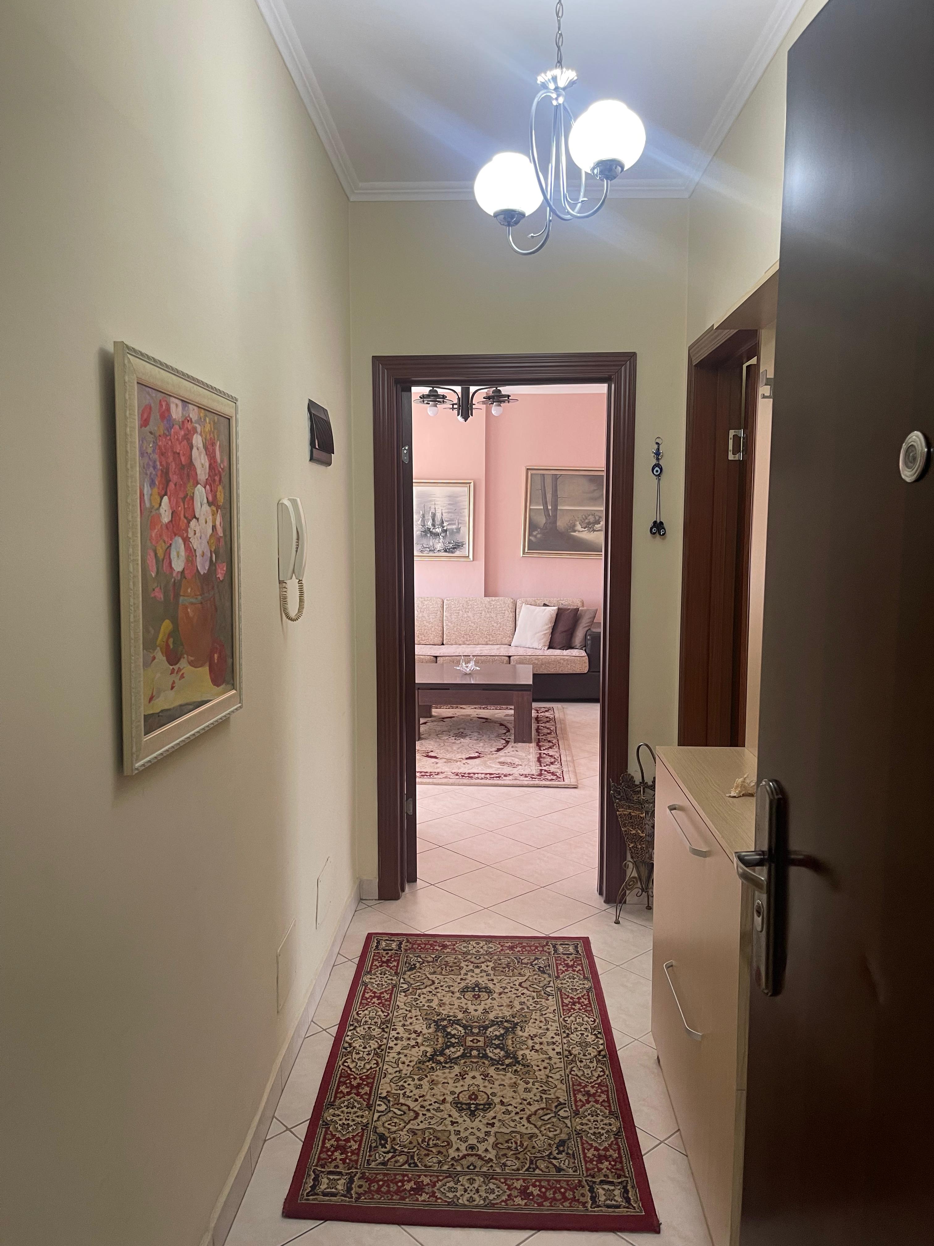 On Dritan Hoxha Street, near Intesa San Paolo Bank, 2+1 apartment for rent, bathroom, balcony, surface 110 m2, 8th floor, new building, with elevator, furnished in a contemporary way. Included in the price is a parking post. G.T.