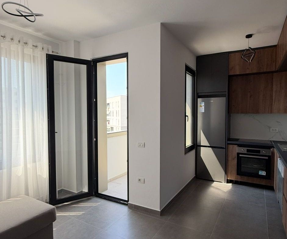 Tek 21 Dhjetori, Kompleksi Kontakt\Magnet, jepet me qera apartament 1+1, tualet, me siperfaqe 60 m2, kati i 5 , pallat i ri, me ashensor, kondicioner, e mobiluar, post parkimi i perfshire ne cmim.D.F