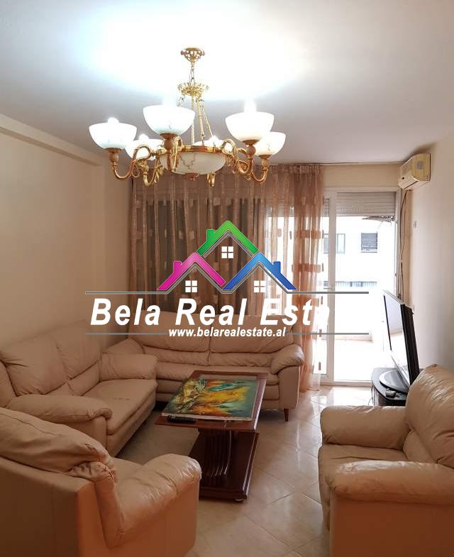 Prane ish-Ekspozites, jepet me qera apartament 2+1, ne pallat te ri, kati 2. Siperfaqe 90 m2 ,2 dhoma gjumi, 1 banjo, sallon ndenje, ballkon. Apartamenti eshte teresisht i mobiluar, kondicioner, ashensor, sistem kapot. Apartamenti gjendet ne nje nder zonat me te mira te Tiranes.