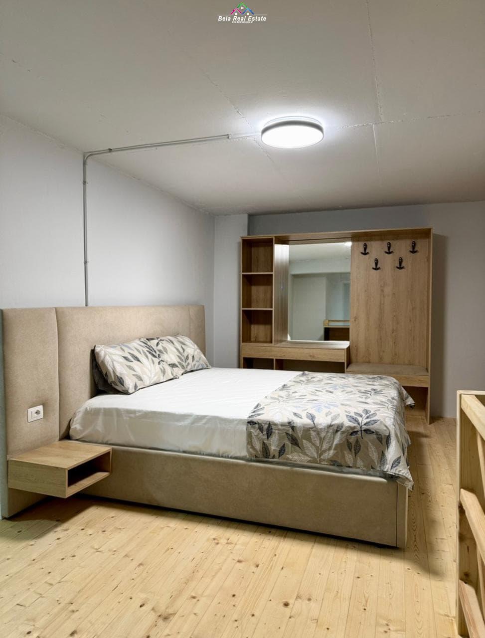 Tek Rruga e Durresit, prane Hotel Colosseo, jepet me qera garsoniere, duplex me siperfaqe 80 m2, kati 0, pallat i ri me ashensor, tualet, parket, kndicioner e mobiluar.D.F
