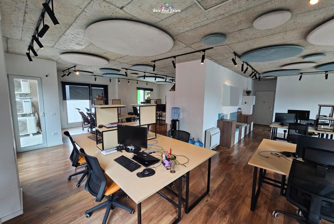 Ne Rrugen e Elbasanit, prane Ekonomikut, jepet me qera Zyre, me siperfaqe 175 m², tualet, kati i 4, pallat i ri , me ashensor, e mobiluar si ne foto, open space, 2 linja trefazore, dritare me xham tripleks termik, akustik. L.D